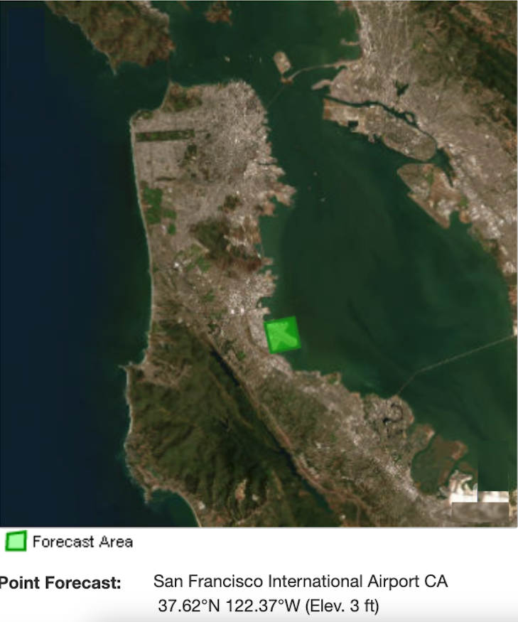 KSFO 240524Z 2406/2512 VRB05KT P6SM BKN250